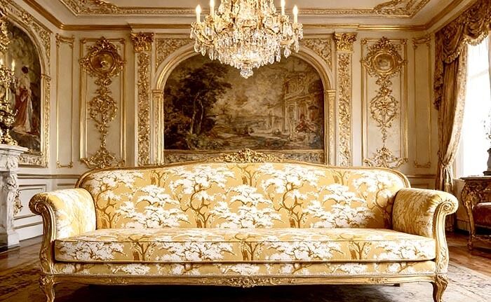 Crafted with a double-layered velvet process, it boasts a luxuriously soft, skin-friendly touch that offers both a plush seating experience and excellent support. The warm amber-gold base is adorned with white tree-pattern motifs, which exhibit subtle shifts in luster under light. This complements the lines of French carved sofas flawlessly, instantly elevating your living room to the sophisticated ambiance of a private Parisian residence.