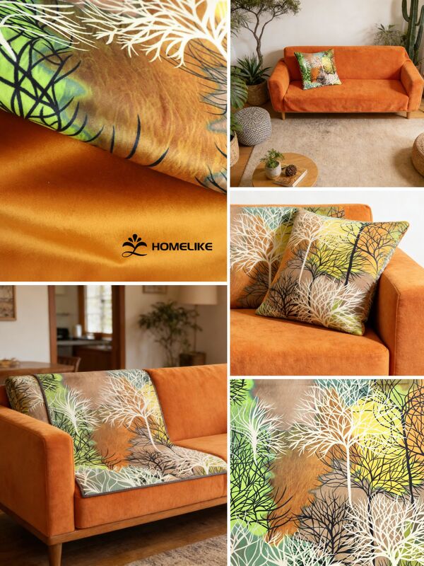 The fabric is paired with a matching solid-color version: the printed style is lively and eye-catching, while the solid one is gentle and versatile. You can mix and match sofa upholstery and cushions freely to create a layered, visually rich home look.