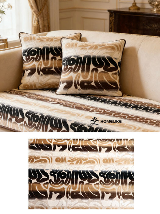 The pattern is continuous and rhythmically dynamic across the entire fabric. When used for large-scale applications such as sofa covers or curtains, it creates a luxurious yet inviting ambiance. As a focal point accent on cushions or upholstery, it instantly becomes the centerpiece of the space, seamlessly complementing a variety of interior styles including luxury, modern, and new Chinese aesthetics.